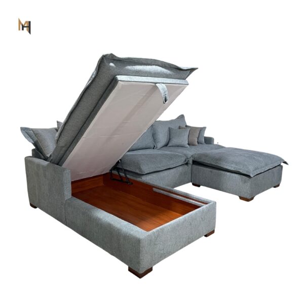 مساحات تخزين ذكية: الركنة تحتوي على سحارة عملية لتخزين المفروشات والأغراض.
